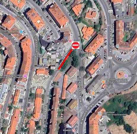 Mantém-se o corte de trânsito na referida rua, junto ao entroncamento com a Rua Calouste Gulbenkian para possibilitar a execução dos trabalhos de reparação na conduta de distribuição de água.
